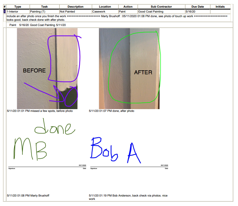 Use photos moreFor simple items like paint drips or superficial imperfections, have inspectors include a “Before” photo of the punch list item with markups, making it easier to identify exactly what needs to be done. After the subcontractor fixes the issue, require them to include an “After” photo for sign-off. This may help to reduce the need for an in person backcheck. Additionally, this method streamlines overall team communication, reducing follow-up calls and texts.