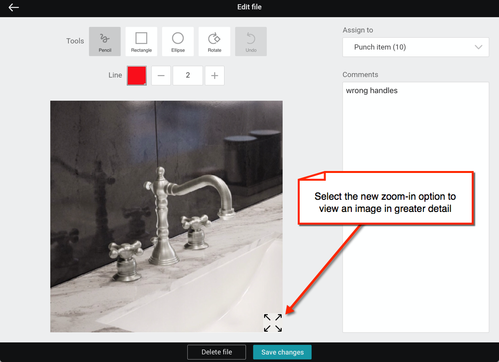 -When you zoom-in to create an item on the plan, the Plan View will remain at the same zoom level instead of returning back to the full view. This makes it easier to add more items in the same area. You can always return to the full plan, by tapping the Full Display icon.