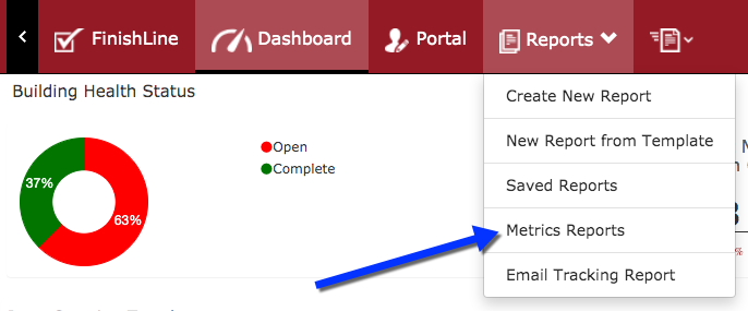 Access Metrics reports in the FinishLine Dashboard
